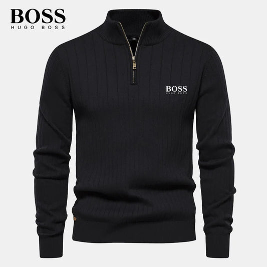 BOSS™ Vertical Ribbed Zip-Neck Sweater